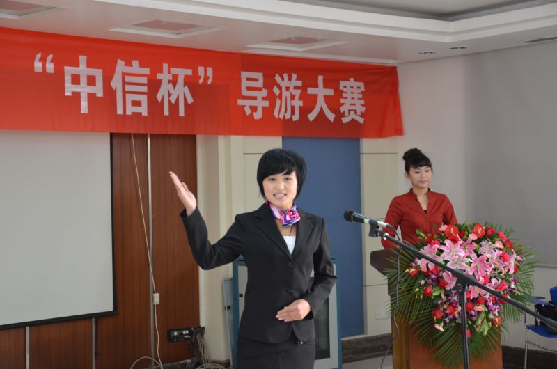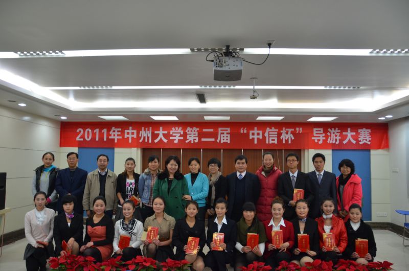 2011年11月18日下午,由中州大学beat365官网和河南中信国际旅行社有限公司共同举办的2011第二届“中信杯”导游技能大赛决赛在中州大学导游实训中心隆重举行。