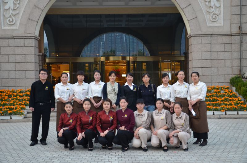 学院领导鉴于对新的人才模式的探索,就校企在人才培养、课程设置、校外兼职教师队伍建设、校外实习就业基地的建设、校企联合开发教材等方面与合作单位进行了深入洽谈和商讨,并取得了初步成效。2011年10月18日下午,郭院长一行到河南天地粤海酒店和郑州建国饭店。首先,郭院长和酒店的宫春海总经理、总经理助理刘华凯等领导就校企合作做了进一步的协商,并就建立校外实习、就业基地等事宜初步达成共识,同时双方都对彼此给予的工作的大力支持给予肯定;其次,郭院长和目前在岗实习的学生、以及往年我校留在该酒店工作的2000级、2003级、2008级部分旅游专业的毕业生进行了沟通交流,一方面鼓励学生要踏踏实实工作,刻苦学习专业技能,不断提升专业素质;一方面及时帮助同学们解决在生活和工作中的困难,并鼓励同学们在各自的岗位上为中州大学的发展增光添彩。