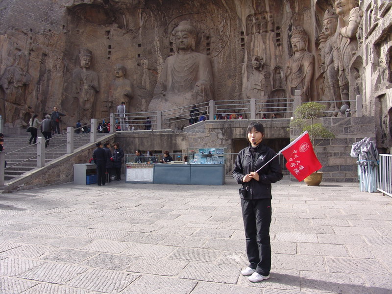 在前往龙门石窟两个小时的路途行进过程中,每个同学都以地接导游的身份进行了沿途讲解。规范的导游服务、生动幽默的语言和甜美活泼的笑容博得老师和同学们的阵阵掌声,让同学们领略到导游的风采和魅力,也着实过了一把导游瘾。