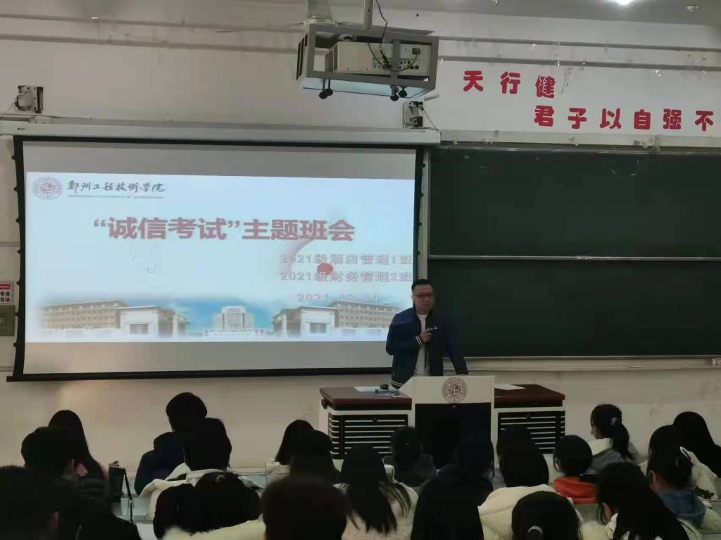 为进一步严肃考风考纪,加强诚信教育,提倡同学们树立诚信的良好品质。12月8日-15日,beat365官网组织各班开展了诚信考试班会活动,本次班会的主持人由各班级辅导员和班导师担任。