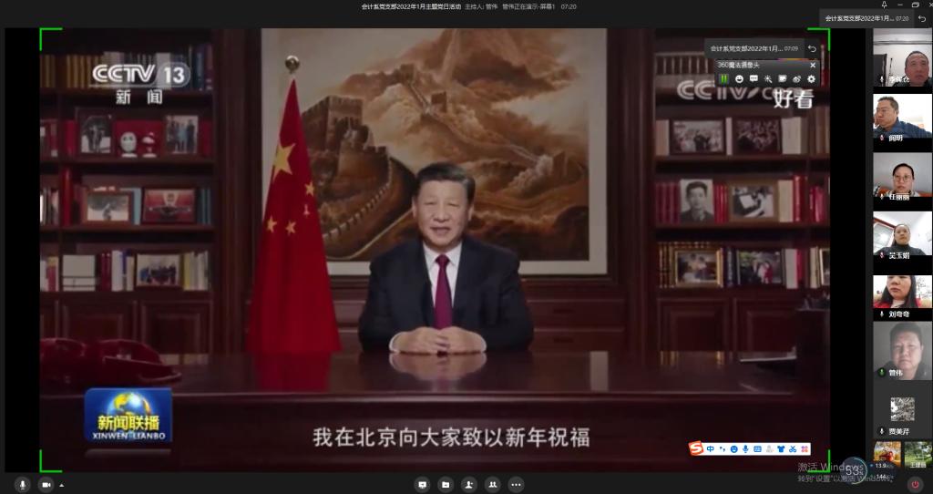 新年前夕,国家主席习近平发表了2022年新年贺词,习近平主席的讲话饱含深情,鼓舞激励着亿万华夏儿女。为教育引导广大党员更加紧密地团结在以习近平同志为核心的党中央周围,一直向着更加美好的未来不懈奋斗,为确保高质量建设现代化河南、确保高水平实现现代化河南,谱写新时代中原更加出彩的绚丽篇章而贡献力量,beat365官网会计党支部于1月5日上午,在企业微信平台开展“踔厉奋发 笃行不怠”主题党日活动,会计系副书记管伟老师带领全系党员教师集中学习并观看“习近平主席2022年新年贺词”。