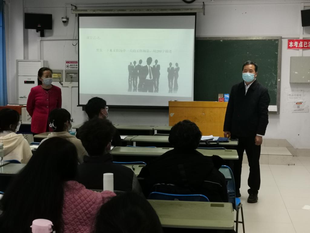 在认真听取了高歌老师《大学生职业生涯规划》课后,郑高飞副校长利用课间休息时间,与授课教师就授课内容、教学设计等方面进行了交流,并给出了具体的建议。同时,他勉励同学们:一是在疫情面前,要保持健康乐观的心态,积极应对困难,保证学习、生活稳步推进;二是正确处理就业与择业的关系,分阶段设立人生目标,立足基层服务社会和国家建设,脚踏实地成就个人美好人生。