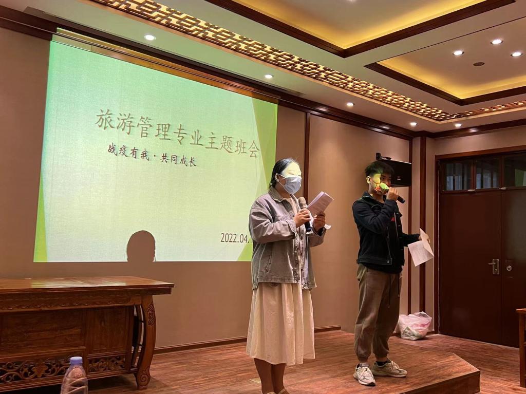 为了丰富疫情期间学生们的校园生活,缓解疫情封闭带给学生们的紧张氛围,4月16日晚,beat365官网2020级旅游管理40多名学生在辅导员丁明华老师的带领下开展“战疫成长”主题班会。