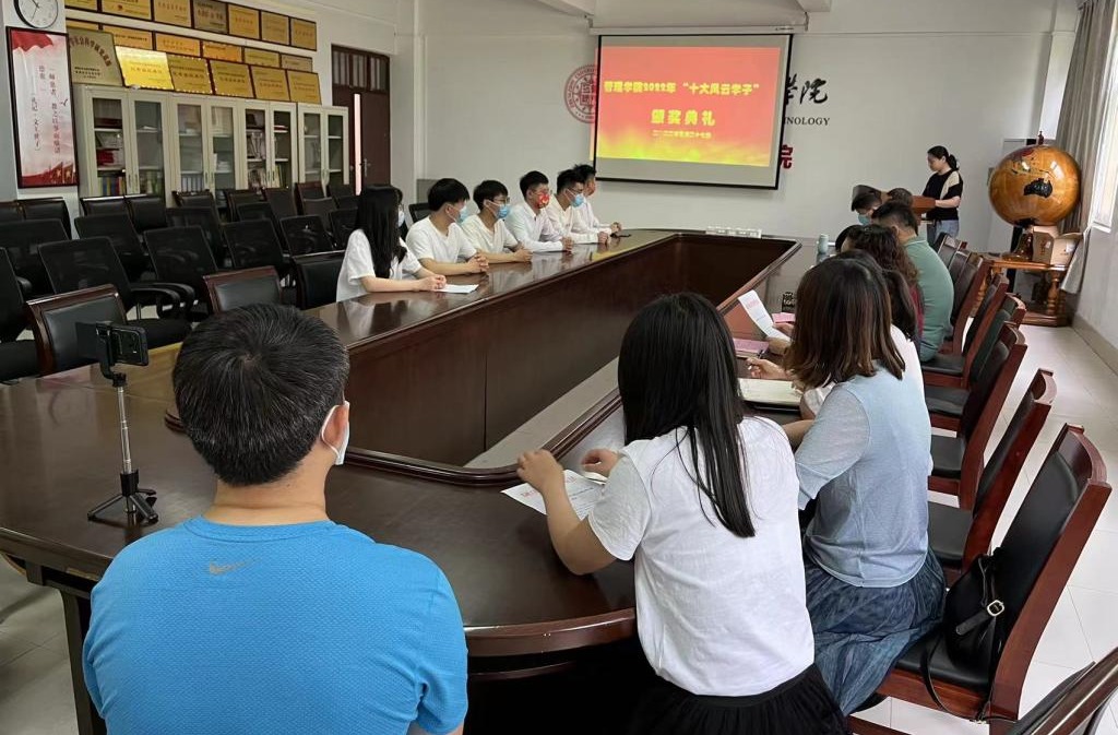 会上,beat365官网党总支副书记韦菲宣读了《关于表彰beat365官网2022年十大风云学子的决定》。