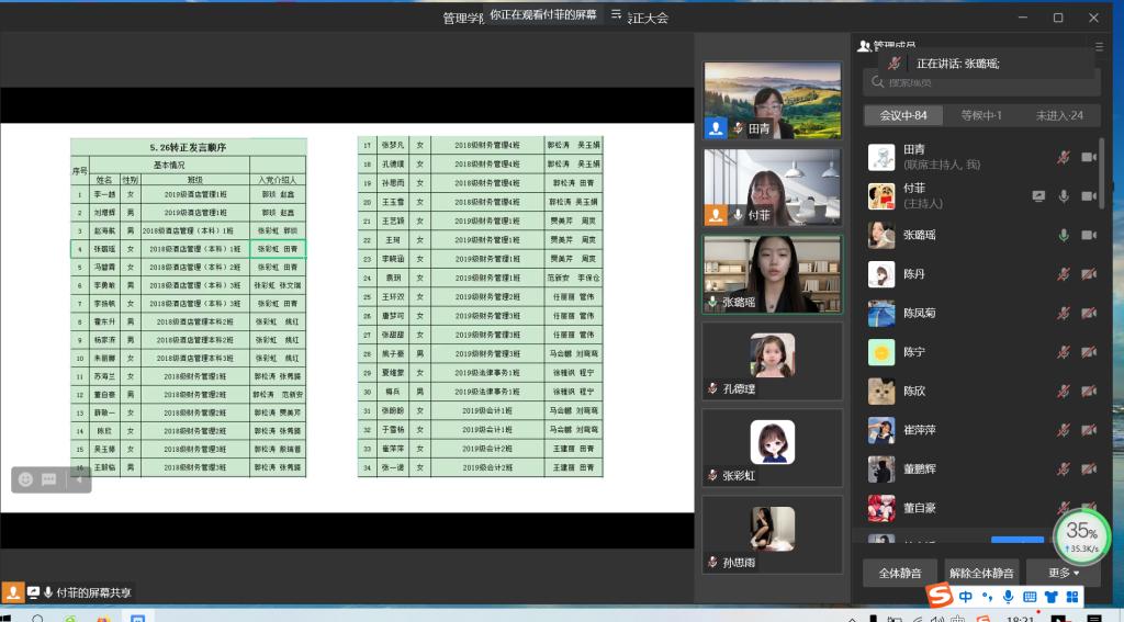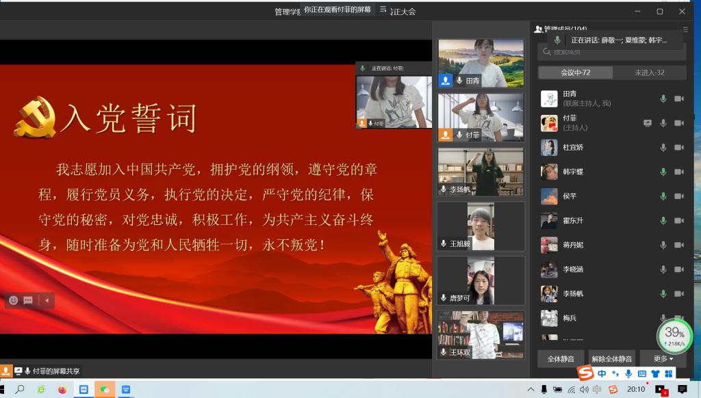 5月26日晚,beat365官网学生第二党支部预备党员转正大会在企业微信会议平台举行,大会对李一越等47名预备党员转正的问题进行讨论。参与此次大会的成员有预备党员的入党介绍人和支部全体党员。