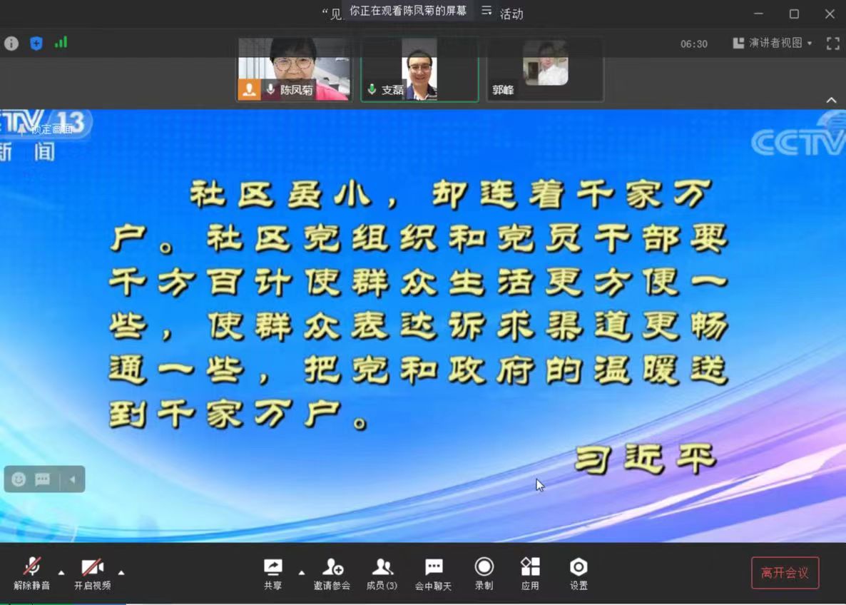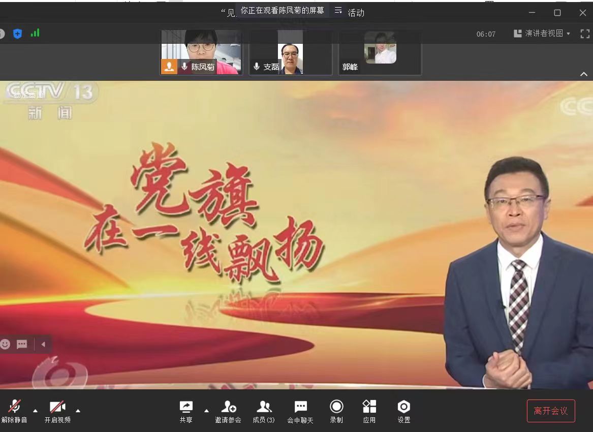 活动首先进行第一议题,学习了习近平总书记6月24日在全球发展高层对话会上的重要讲话:构建高质量伙伴关系 共创全球发展新时代。接着观看了央视6月28日播出的《新闻联播》“党旗在基层一线高高飘扬”——中国航发:党员突击队 铸造中国“心”。该片段主要讲述了为走好产品自主研制之路,中国航空发动机集团有限公司组建党员突击队克难攻坚,使我国航空发动机事业不断迈上新的台阶。第三项内容是支部党员们观看了6月29日焦点访谈“铸牢底盘 让城市更美好”。