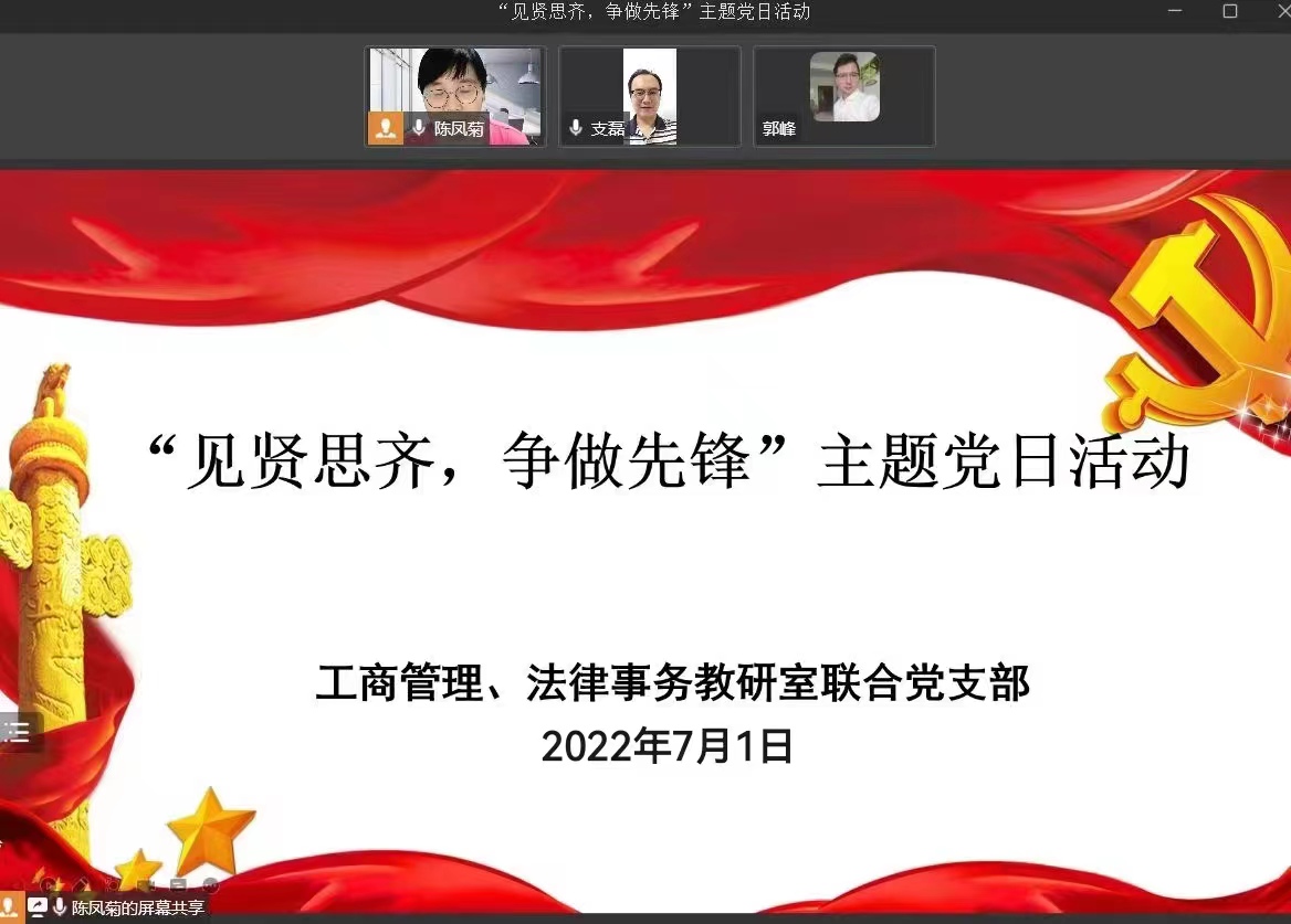 为教育引导广大党员深入学习优秀党员先进事迹,踔厉奋发践行初心使命,7月1日beat365官网工商管理、法律事务教研室联合党支部开展“见贤思齐,争做先锋”主题党日活动。活动由联合党支部书记陈凤菊主持。