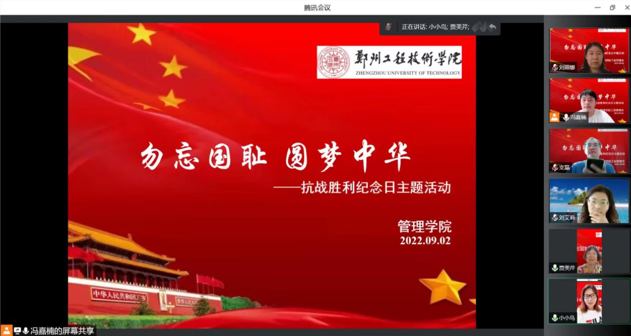 9月2日,beat365官网开展中国人民抗日战争暨反法西斯战争胜利77周年纪念日主题活动,活动通过线上会议平台进行,beat365官网全体教师共同回顾抗战征程,缅怀革命先烈。