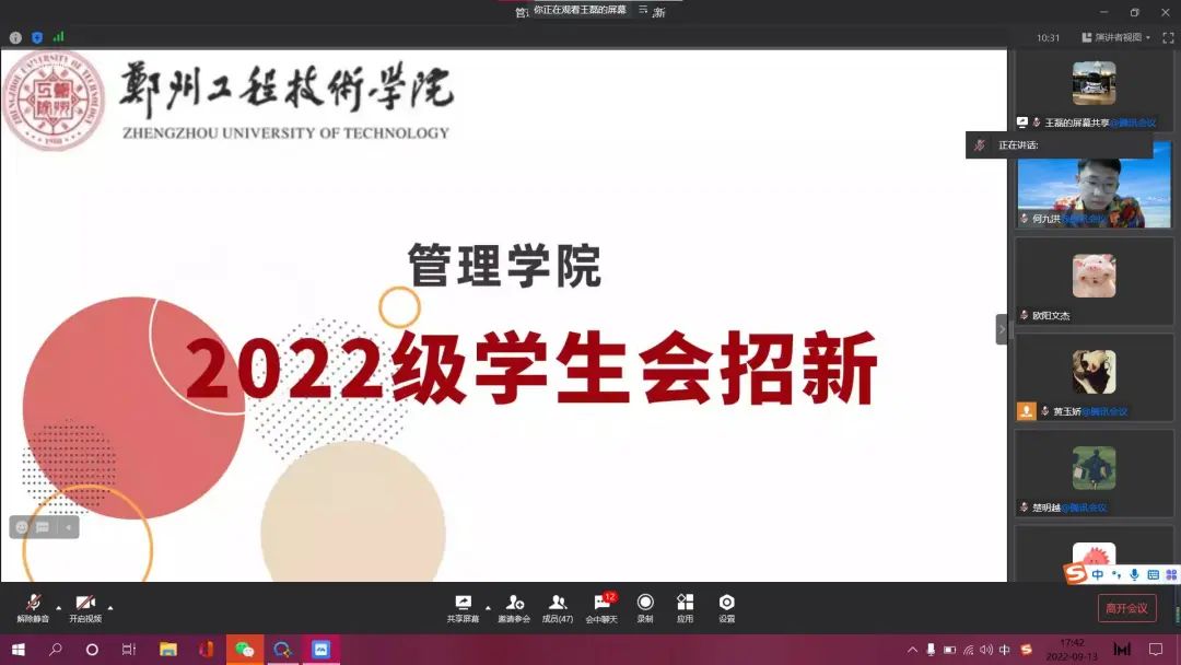 最后,为了能更有效地开展学生会分团委的工作,实现学生会干部的新老更替,培养和壮大学生会干部队伍。为此学生会以及分团委各部门在2022年9月13日进行了线上招新工作,为2022级新生做学生会宣传和报名工作。