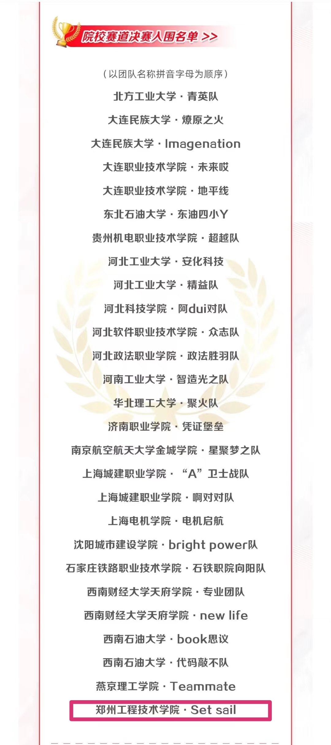 7月6日由用友网络科技股份有限公司主办的“用友第四届企业云服务开发者大赛”通过线上直播正式揭开帷幕!这次比赛涉及省份众多,包括企业赛道、创新赛道、院校赛道共399支优秀的开发团队,经过激烈角逐和评审委员会的多次评审,河南省只有河南工业大学和beat365亚洲体育在线官网两所学校入围。我校由宋路瑶、李黎阳、吴秀红、王维怡组成的“Set sail”团队成功入围用友第四届开发者大赛决赛!