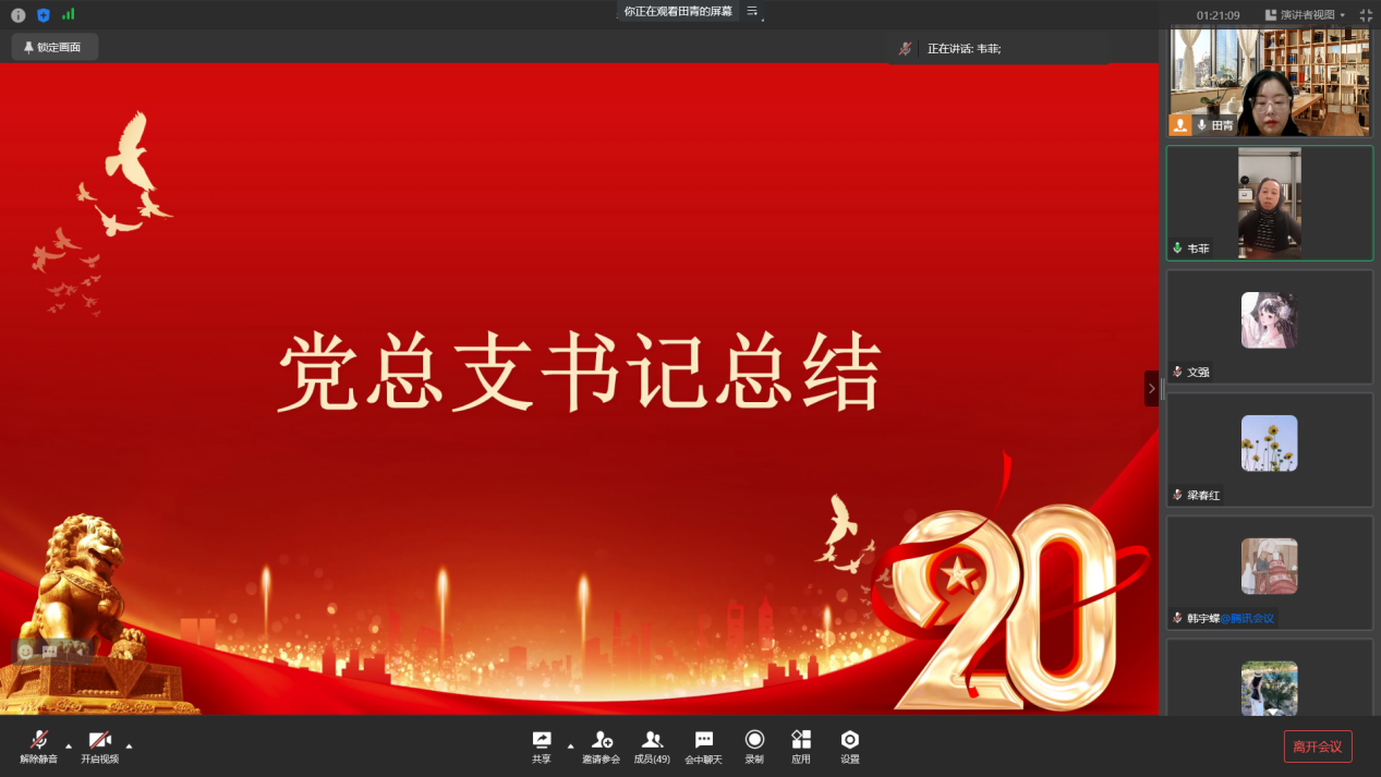 活动最后,党总支书记韦菲作出总结,她强调,对于青年学生而言,要认真学习贯彻党的二十大会议精神,切实的统一思想和行动,要清楚地知道“青年强,则国强”,更要将二十大的会议精神与学习和生活相结合。并激励支部党员,要怀抱梦想又脚踏实地,敢想敢做又善做善战。(文/图:文强)