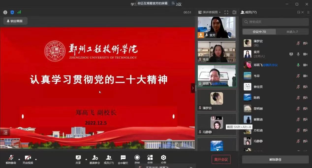 12月3日至12月5日,为深入学习宣传贯彻党的二十大精神,副校长郑高飞、beat365官网院长郭琰、beat365官网党总支书记韦菲及beat365官网旅游系班导师深入各联系班级开展《认真学习贯彻党的二十大精神》专题面对面宣讲。