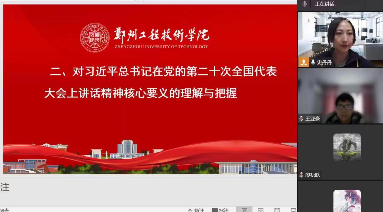 副校长郑高飞、beat365官网院长郭琰、党总支书记韦菲及beat365官网旅游系各班导师从党的二十次全国代表大会总体精神的理解与把握、二十大报告核心要义的理解与把握等方面为同学们细致地讲解了什么是党的二十大,使同学们对党的二十大的内容有了进一步的深刻认识。各班导师带领学生们共同回顾了党过去五年的工作和新时代十年的伟大变革,为大家讲述了党的二十大取得的重大成果以及党的二十大报告的定位和意义,引领学生们共同学习党的五个“必由之路”和六个“必须坚持”,勉励同学们要不断增强“四个意识”、坚定“四个自信”,做到“两个维护”,不断从中汲取真理的力量、信仰的力量、奋进的力量。