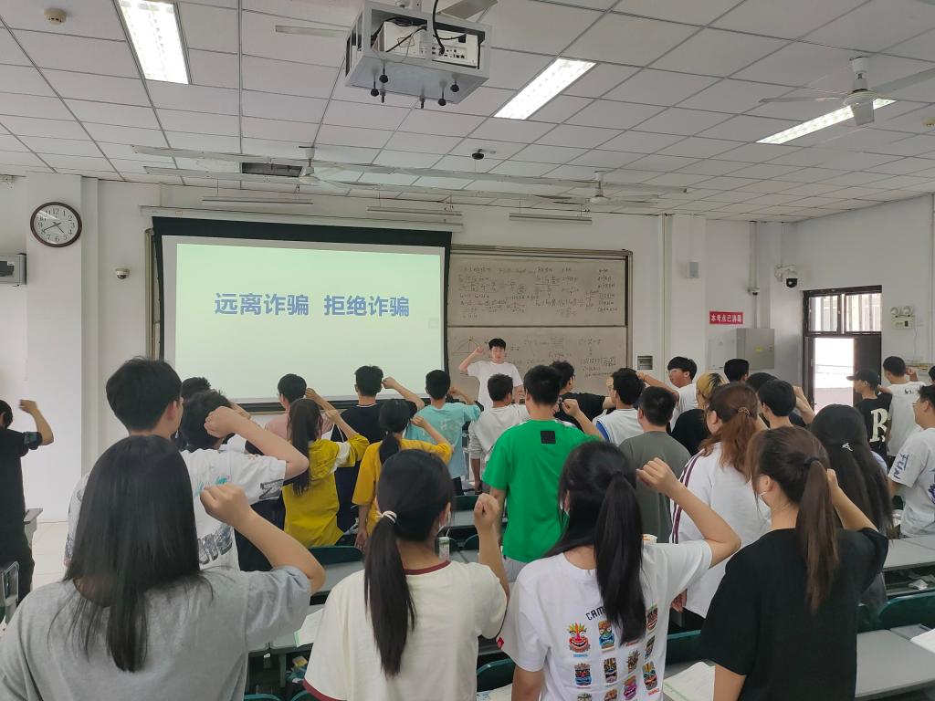 4月17日,各班召开“远离诈骗 拒绝诈骗”主题班会,组织全体学生进行防范电信网络诈骗的宣誓活动。各班通过讲述大学生受骗案例向学生们普及了电信网络诈骗的常见手段以及识别防范电信网络诈骗的方法,帮助学生提高防范诈骗的意识和能力。
