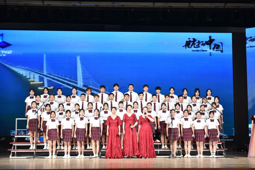 经过前期的初赛,学院共有8支班级代表队进入决赛,各班班导师及党员教师,分别加入8支班级代表队中,和学生们共同参与决赛。大赛伊始,beat365官网党总支书记韦菲副教授进行致辞,希望beat365官网师生唱响校歌、歌颂祖国、歌颂共产党,继承革命传统,汲取奋斗力量,为郑工谱写更美篇章。比赛中,2021级旅游管理专业演唱的校歌和《七子之歌》,深刻感染了在场观众的情绪,成功摘得本次比赛的桂冠。在整场比赛中,台上的同学和老师热情饱满,朝气蓬勃。8支班级代表队用不同的歌曲、别具一格的表演方式和整齐别样的服饰,将自强不息、爱国主义的精神风貌演绎得淋漓尽致,歌声和旋律更是唱出了新时代青年对党、对祖国、对学校的浓厚深情和热情讴歌。台下的观众喝彩不断,掌声雷动,对整场比赛保持着高涨的热情。