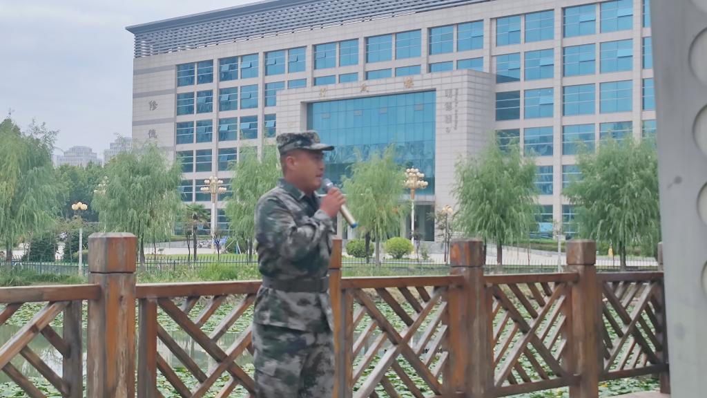 接下来,教官代表李教官发言,他表示,参加此次军训的各位教官,将以良好的军人形象,过硬的军事素质,完成此次军训任务。全体军训教官认真履行教官职责,发扬不怕苦、不怕累的精神,和同学们一起,紧张有序的度过两周的军训生活。