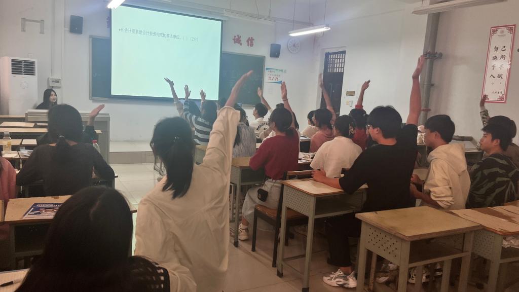 此次比赛主要面向本校2023级财务管理专业新生,每支参赛队由4名同学组成。竞赛形式主要为内容先由文档形式对选手进行发放,再由工作人员将其制作成PPT,参赛选手分别在抢答和竞答环节中进行比赛。赛前,相应的工作人员落实比赛所用场地以及确定评委、主持人;提前确定参赛人员,完善落实比赛所需的PPT;并安排相关人员负责记录比分情况。赛中,主持人进行开场白,并依次介绍到场嘉宾及评委;在必答环节中,每个参赛队分别对单项选择、多项选择以及填空进行必答,评分人会及时对应打分;在竞答环节中,主持人通过观察参赛选手的举手速度挑选最快的一队来回答正确并加分。