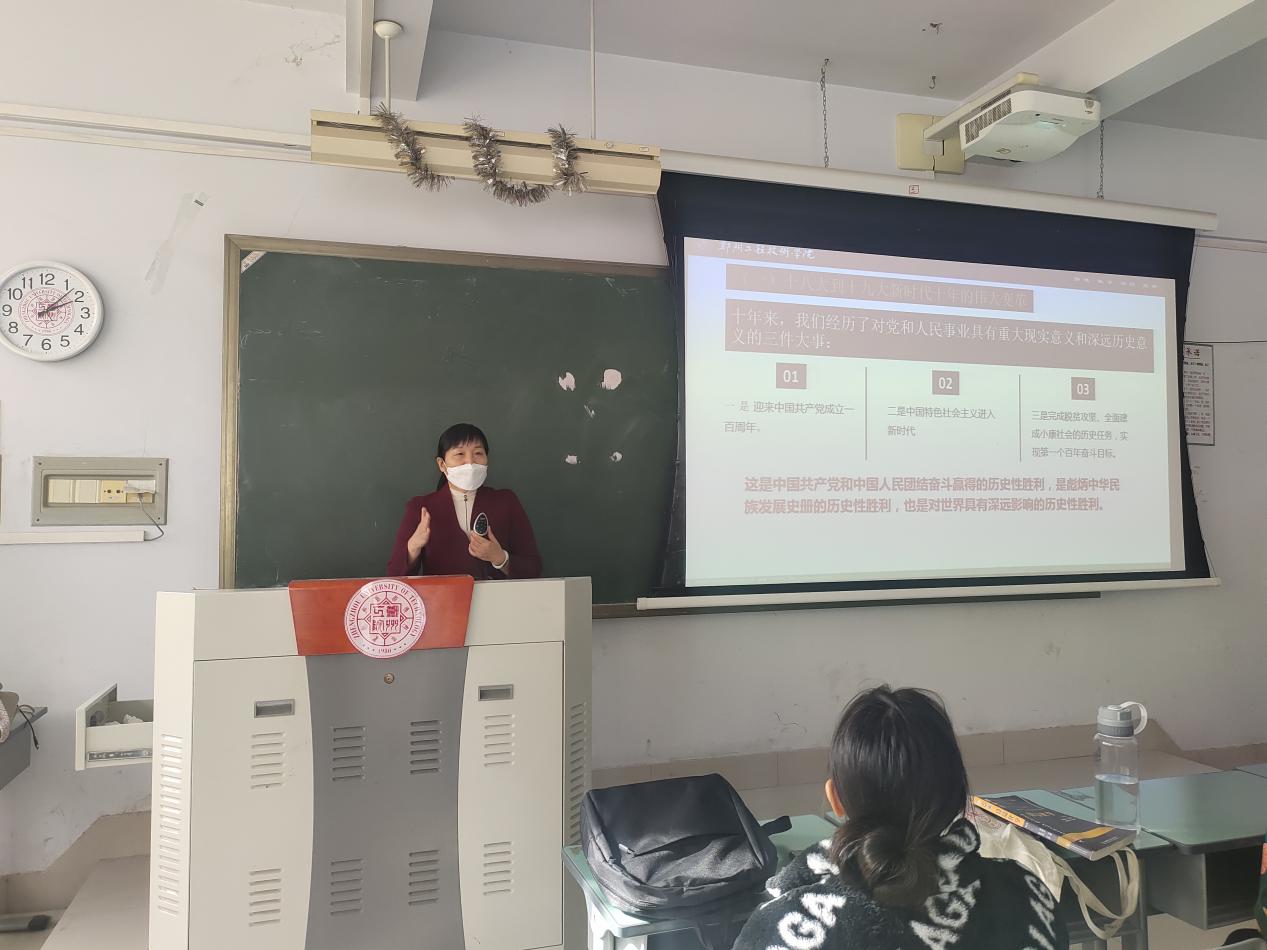 陈凤菊教授从“新时代十年伟大变革”、“开辟马克思主义中国化时代化新境界”、“新时代新征程中国共产党的使命任务”等多方面切入,带领同学们深入了解学习党的二十大精神。