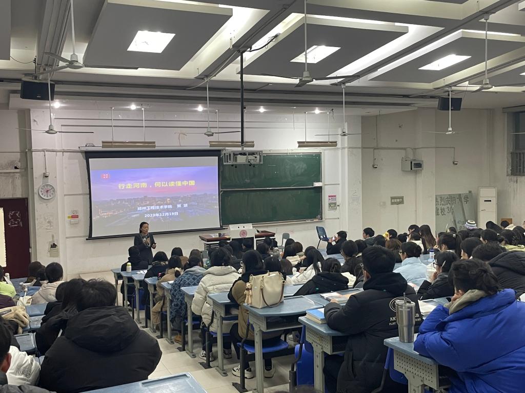 郭琰教授旁征博引,娓娓道来,PPT图文并茂,使学生们受益匪浅,掌声不断。通过讲座,学生们了解到河南是中华民族的文明、民族、文化和姓氏的源头,进一步传播河南文化旅游的品牌形象,坚定文化自信,赓续文化血脉,为建设社会主义现代化强国贡献河南力量。(张文瑞/文 张晴/图)
