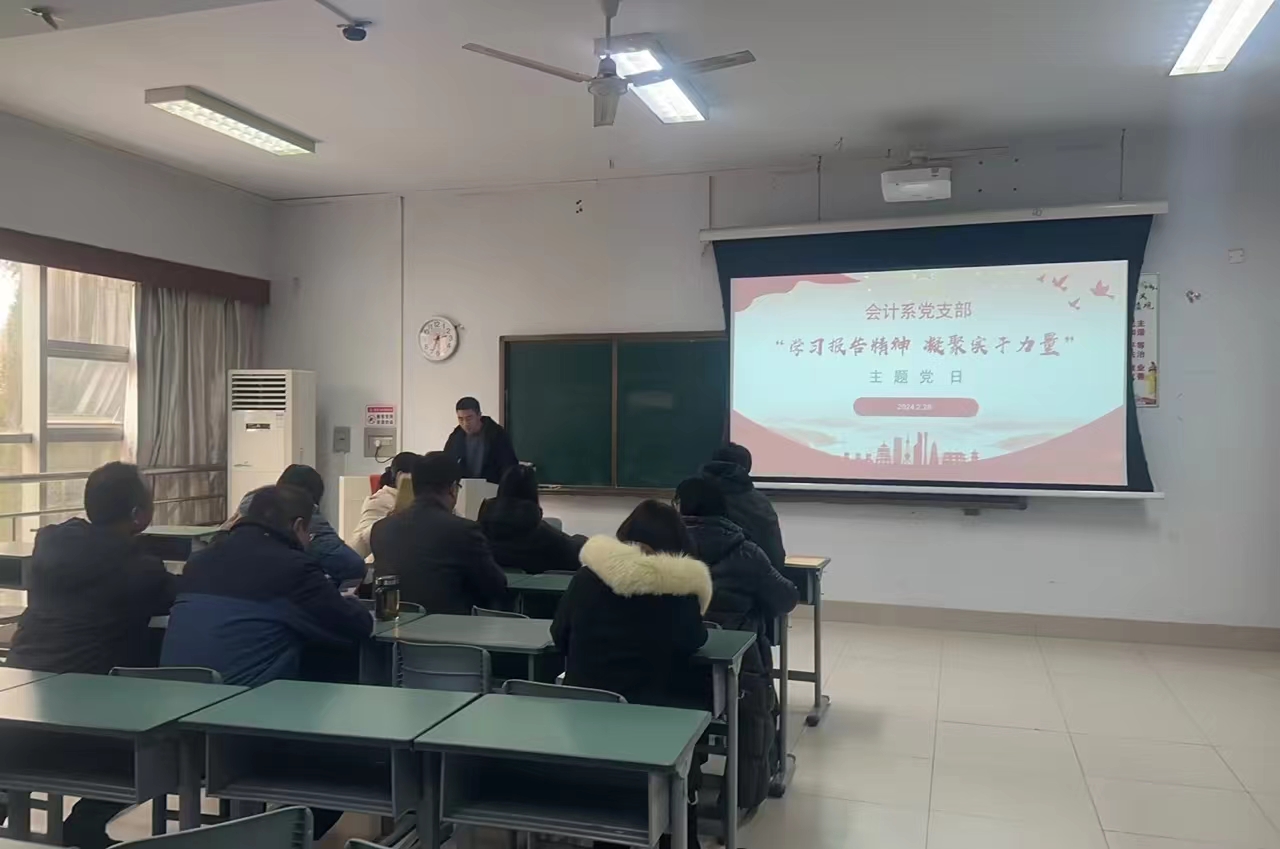 2月28日下午,beat365官网会计系党支部在3202教室开展“学习报告精神凝聚实干力量”主题党日活动,党支部全体党员参加此次活动,会议由党支部书记范新安老师主持。