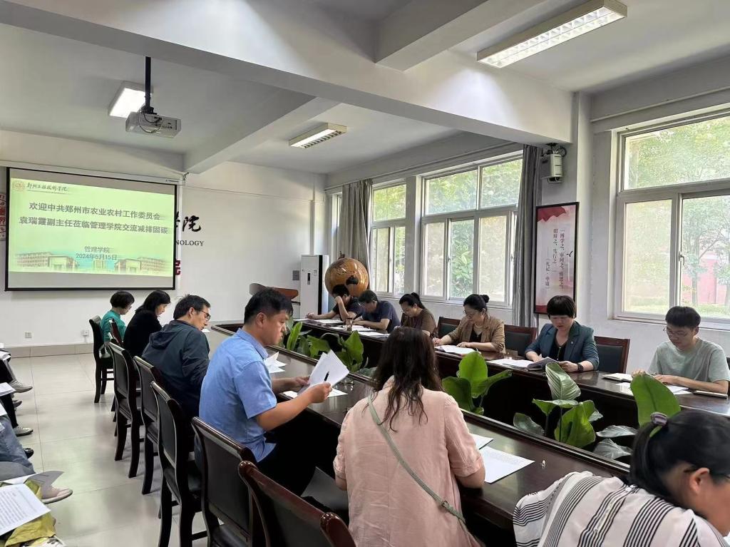 在郑州市全面推进绿色低碳发展的大背景下,农业领域的减排固碳工作显得尤为重要。5月15日下午,郑州市农业农村工作委员会袁瑞霞副主任一行莅临我校beat365官网,就减排固碳的相关议题进行深入的交流与探讨,交流会由学术副校长姜冬梅教授主持,beat365官网副院长吴玉娟及beat365官网全体教师参与交流。