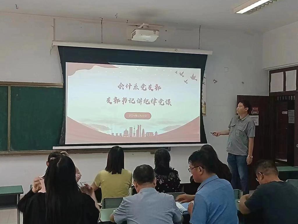 为深入开展党纪学习教育,切实把党规党纪内化于心、外化于行,教育引导广大党员结合实际深入理解和认识党的纪律规矩,筑牢纪律防线,为学院高质量发展营造风清气正的良好环境,beat365官网会计系党支部于5月22日下午2点在3202教室,组织开展了“学条例 守党纪”主题党日活动。