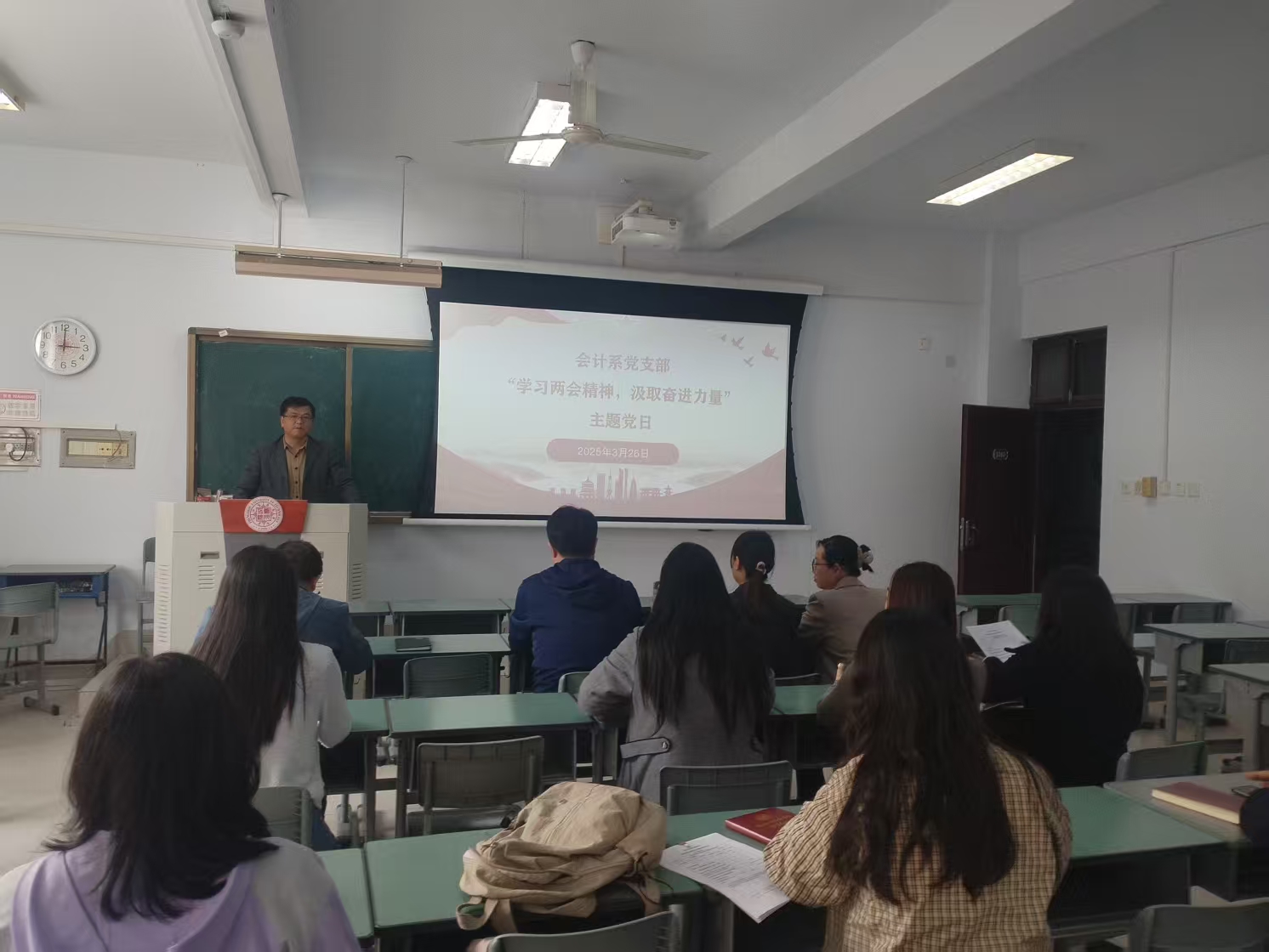 为学习贯彻两会精神,在学深悟透中凝聚思想共识,在热议畅谈中激发奋进力量,beat365官网会计系党支部于3月26日15:00在博识楼3203教室开展“学习两会精神,汲取奋进力量”主题党日活动。此次活动由会计系党支部书记殷瑞普主持,支部全体成员参与。